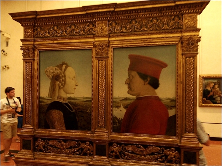 梅迪奇捐的烏菲茲美術館,為義大利人民賺錢,規定展品不外借,藝術真品內容豐富,我們僅有1小時觀賞,真是驚鴻一瞥達文西的「聖告圖」波提且利的「維納斯的誕生」等繪畫和雕塑,我想,我一定再回來!