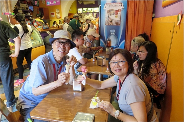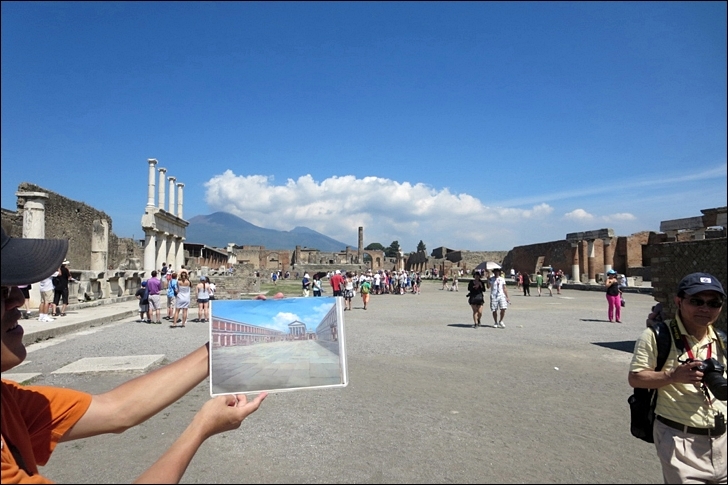 公元79年因維蘇威火山爆發,被火山岩灰覆蓋埋在地下,直到1748年才發現,至今尚有1/3在挖掘中。參觀此廢墟彷彿穿越時光隧道回到1900年前人們的生活及城市景觀,感受當時龐貝人的智慧。尤其義大利地陪,是文字學教授,雖沒到過台灣,但能用國語加台語講解,不僅清楚而且傳神,同時連時髦的LP、腦殘、站壁等諸辭,都能適時用到,其妙處令人莞爾。