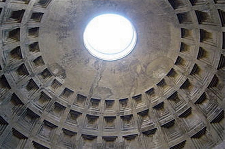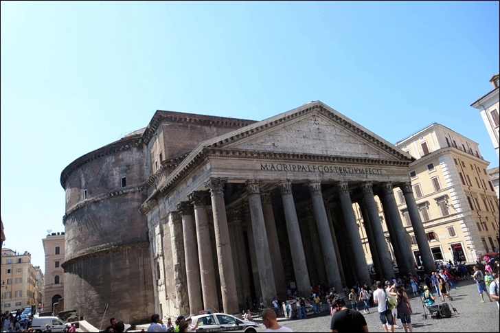 萬神廟是古羅馬建築和藝術的結晶,最初建於公元前27年,公元125年由羅馬皇帝哈德良重建,廟的結構簡潔明瞭,主體呈圓形,有個寬34米、深15.5米的柱廊,從根部的5.9米一直減少到頂部的僅1.5米,穹頂直徑為43.3米,厚度是逐漸削薄,頂部有一個直徑8.9米的圓形大洞,這個洞是萬神廟唯一採光點,會隨著太陽位置移動而改變光線角度,給人神聖莊嚴的感覺。