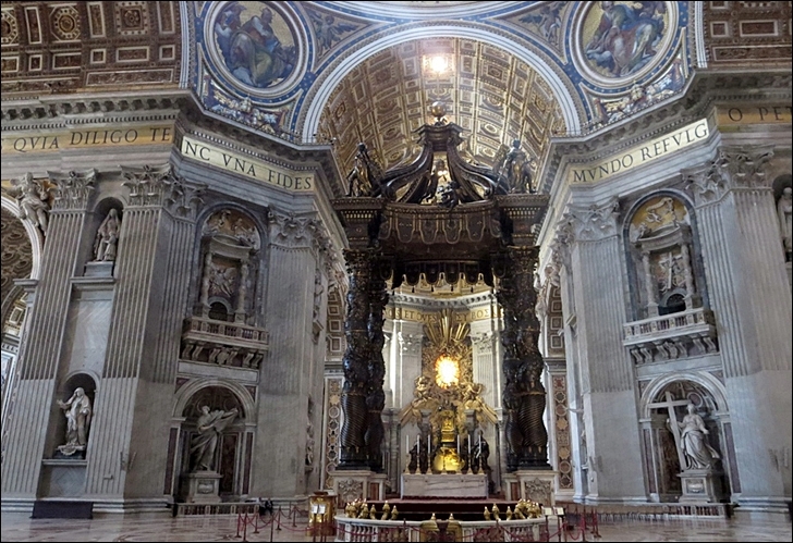 聖彼得大教堂高聳的圓頂是米開朗基羅的傑作,不僅採光而且增加天人合一感覺,其雄偉宏大的建築及堂內大理石之豪華裝飾,為世界之最。