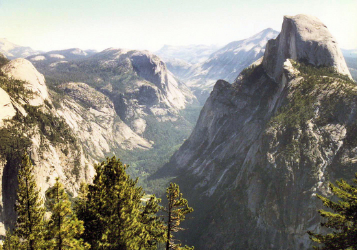 上面這張照片是由冰河點看優勝美地的象徵 — " 半穹頂 " ( 即右側那座彷若被利斧劈掉半壁的圓頂巨石 )