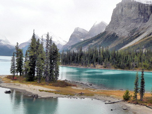 , 加拿大洛磯山脈的好山好水大概是拜豐富的冰河資源所賜, 湖泊極多, 大山大水的讓我們台灣來的心生羨慕. 可他們的氣候就沒法比得上我們了. 我們小學同學一行人在溫哥華主人同學籌劃下2007/7/19 也來到瑪琳湖和精靈島. 這些旅遊團不來, 因為地點偏遠連溫哥華人都不容易來的地方可真美, Moraine Lake 就比露薏絲湖美多了, 也清靜多了. 瑪琳湖的 Sprit Island 更是不食人間煙火, 在島上看冰河頗有遺世而獨立的情境. 稍後上傳照片後,我也來附一張照片.
