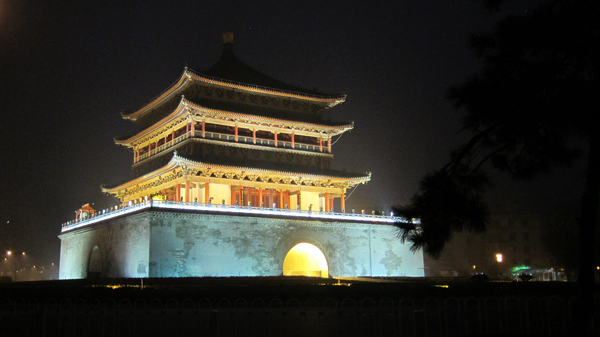說到「鐘樓」一定會想到「鼓樓」,西安鼓樓是存在中國最大的鼓樓,位於西安城內西大街北院門的南端,東與鐘樓相望。始建於明太祖朱元璋洪武十三年,比鐘樓大四歲,迄今已有625年歷史。清康熙三十八年和清乾隆五年先後兩次重修,登樓遠望,鬧市風光、秦川景色歷歷在目。但是,在西安的那幾天,一直沒有聽到所謂的「暮鼓晨鐘」,頗感遺憾。