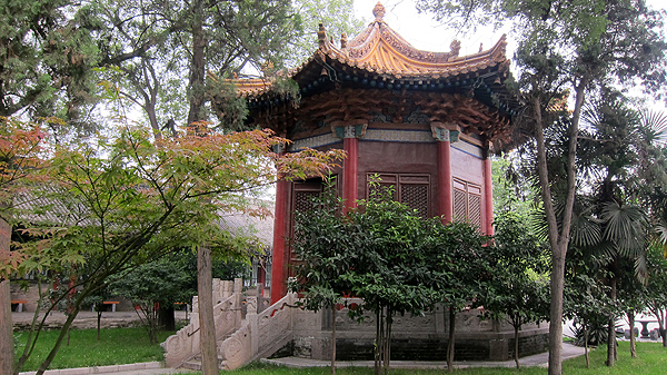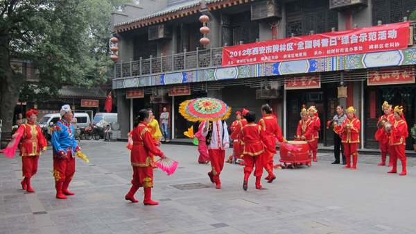 在書院街往東走到底,接近文昌門的地方,就可看見聞名的西安碑林博物館。這兒原是孔廟,創建於西元1087年,是收藏中國古代碑石時間最早、數目最大的一座藝術寶庫,陳列從漢到清的各代碑石、墓誌一千多塊。這裡碑石如林,故名「碑林」。