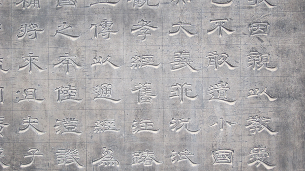 「石台孝經」刻於唐天寶四年(公元745年),由唐玄宗李隆基作序、註釋書寫。