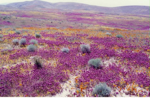 羚羊谷有一處州屬罌粟花保留地,每年四月開放。我偶而尋找花蹤經過該地,見到沿路朝聖的車輛滿坑滿谷,都會失笑。野花是不識字的,不會了解那塊保留地是專為它闢置的。據我多年經驗,罌粟花保留地的野花,多半沒有四處無名的坡地精彩。天下沒有白吃的午餐,尋找仙境需要體力,時間和毅力。越是舟車不到,人煙罕至的荒地,野花越可能開得興頭。牢記:沙漠也許貧瘠荒蕪,卻蘊藏着最絢麗的可能性。同時:美麗的事物多半短暫,野花季稍縱即逝,磋跎只會空留惆悵。
