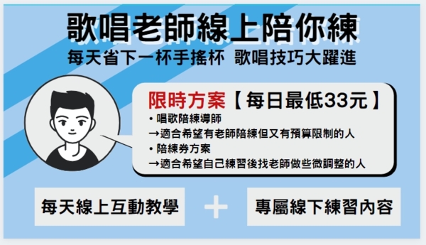 歌唱老師線上陪你練|1對1每天不間斷|小資學唱歌月租方案