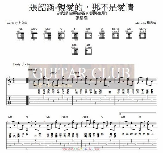 詞:方文山 曲:周杰倫 Play:G 原key:A