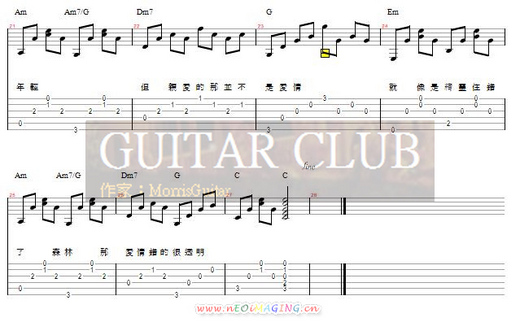 這首抓歌時本來沒這麼多過門音以及過門和弦的,但一些根音的加入竟然異常的好聽阿,想必這不是偶然應該是作者的苦心巴.Am建議用食指第五格按1,2,3弦 無名指按第四弦第七格, 5,6弦不按的方式彈(如張震嶽-秘密,動力火車-除了愛你還能愛誰)