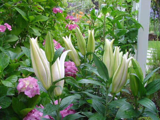 這些香水百合的球根是我去年底在Lowes(此地的住家美化修繕等用品連鎖店)以低於