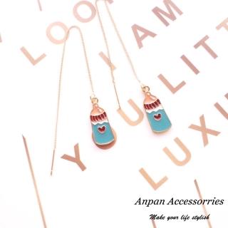 【Anpan】甜美ins風粉嫩食玩耳線式耳環 愛心奶瓶款