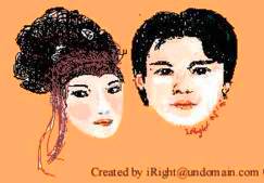 就是最上面你看到的那幅「小倆口」,其實是我避情出走同學家中,徹夜難眠時的產物。我用這幅畫,硬是讓自己當成主婚人兼證婚人,把同學的大頭照和正打得火熱的女友沙龍照,通過滑鼠和小畫家早早送他們入洞房。