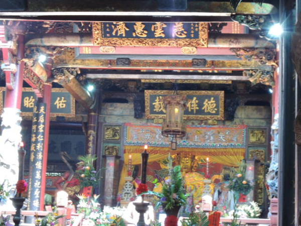 台南大天后宮又稱大媽祖廟,廟宇原本是明寧靖王朱術桂的府邸,在清康熙22年施琅平台後,鑑於台灣人民對於媽祖信仰虔誠,為收民心,乃奏請清廷將寧靖王府邸改建為媽祖廟,才改建為天妃宮,並尊稱媽祖為天上聖母,是全台第一座官方興建的媽祖廟,廟中古匾古聯甚多,包含康熙、雍正等歷代皇帝所賜之御匾為全台各廟之冠。所有建築內的雕塑均為昔時特聘福建名技師精心鑿刻,極盡古雕刻藝術之美,現為國定古蹟。大天后宮裡共有建築四進:三川殿、拜殿、正殿、後殿,還有觀音殿、三寶殿及頭門、正殿、後殿、三川門與步廊等部分,正殿奉祀的媽祖神像栩栩如生、尺寸碩大,是大天后宮最大的特徵,由泉州師傅親自在廟內製作,作工相當精緻,曾被譽為是全台最具歷史價值與宗教意義的泥塑造像。而旁祀的千里眼、順風耳亦為傳統泥塑的上乘佳作,其剛健神武的動作與神情,彷彿隨時凝視與傾聽凡間廣大民眾的訴求,兩位宮娥則神情專注,侍奉主人。大天后宮位於斜坡地,坐東朝西,早期前面即是碼頭。因此殿宇地面步步高昇,自三川殿、拜殿、正殿而後殿,一氣呵成,氣勢雄偉。依現存物來看,三川部份為民國三年所置,屋頂於光復後改為重簷。兩廊亦同時修改,出現西式柱頭。拜殿龍柱石雕有標著為道光年間風格,而為了顯示天后的尊貴,不繪門神,改以門釘替代來裝飾。大天后宮具有豐富的建築特色與歷史文物,穿梭其間,宛如置身藝術殿堂,令人有如獲至寶的感覺。