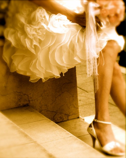 看見身著一襲婚紗短裙的溫翠蘋 拿著捧花出現在店門口