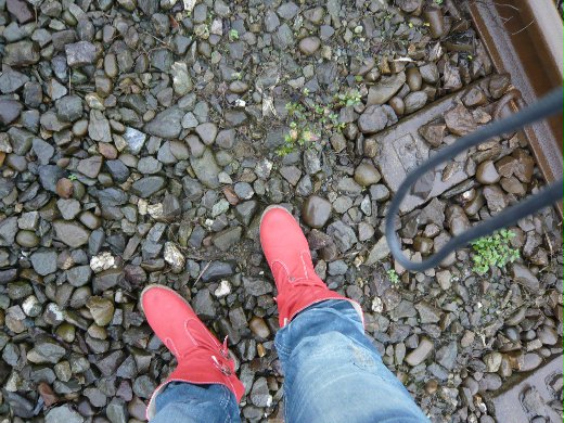 (圖說:本刊主編帶著編輯部前往平溪的畢業旅行。眾同事們在蕭瑟雨中漫步鐵道,這是大家最後一次走在同樣的道路上。眾人踩著各自的步伐,今後如何,誰也難預料。穿著紅鞋的我,會一直沒事一樣的雀躍跳著舞嗎? )
