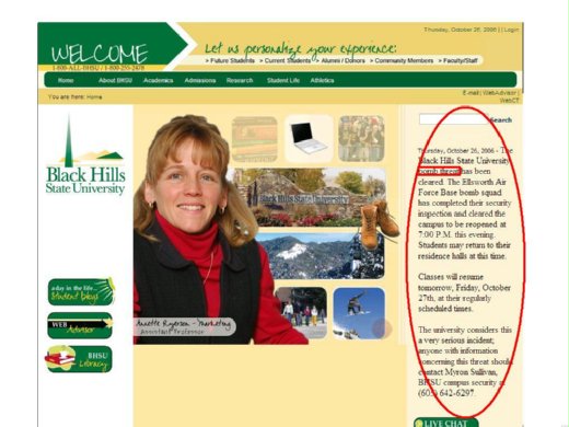 ※圖一:下午7點過後,學校網站上所出現的訊息。