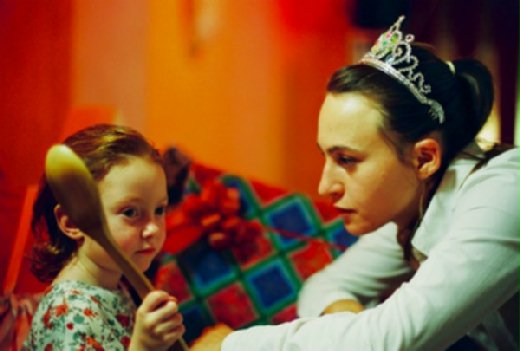 服務生想找小時候的衣服給小女孩穿,問她母親在哪,母親回說應該留在她父親那。