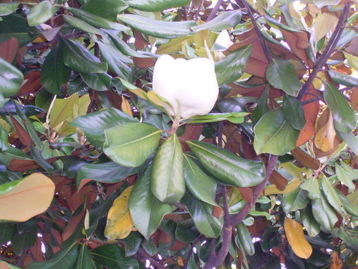 這種花,還沒開的時候,像含苞待放的荷花,白色的。盛開的時候,像白色的荷花開在樹上,是那種花瓣較寬大,開起來像個碗狀的白荷花。