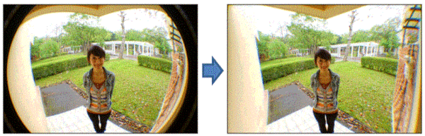 用魚眼鏡頭的好處是「看得廣」與「沒有死角」,但是影像會扭曲,必須透過fisheye distortion correction algorithm,最具代表的IC是義晶科技﹝台灣﹞AVS7201與AVS7110,