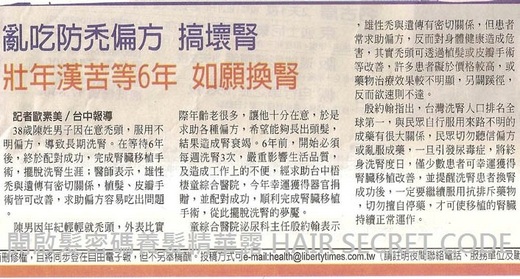 【開啟髮密碼】亂吃禿頭偏方,搞壞腎臟~~