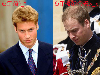 6年前的威廉王子一頭濃密金髮,迷倒萬千少女。