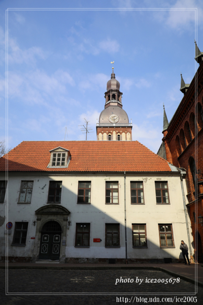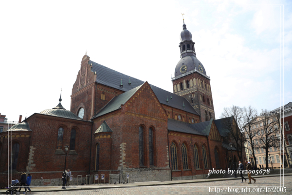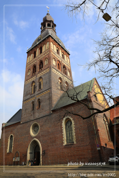 #31.里加大教堂(Doma Bazīnca)外觀一隅………教堂的鐘樓高達90公尺,1776年,鐘樓的尖塔遭到雷擊,整修時在的尖塔上加裝風信雞,目前所見的鍍金風信雞是則是1985年換上的。