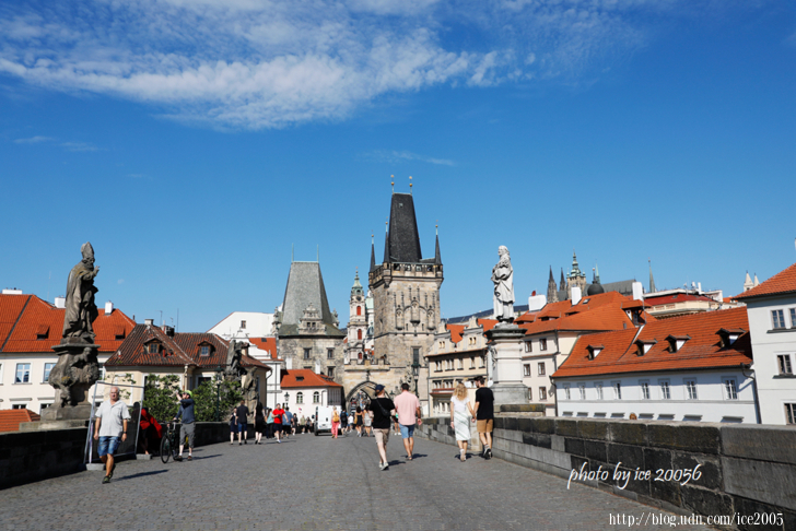 #12.查理大橋 Karlův most一隅.......橫跨在伏爾塔瓦河上的查理大橋建於1353年,完成於十五世紀初,查理大橋連結了老城區與布拉格城堡及鄰近地區最重要的通道。查理大橋兩旁佇立著30座雕像,取材自聖經、歷史上的聖人或英雄。不過這些雕像並非從橋梁完工時就存在,而是從1683年開始設置,且其中有些雕像並非原版,它們被收藏在博物館裡,取而代之的是複製品。