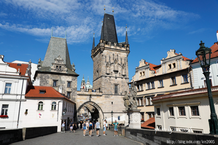 #13.橋塔.......查理大橋的兩端都築有橋塔,舊城區端由Petr Parléř與查理大橋同時期設計建造,小城區端的橋塔有2座,較矮的橋塔是在十二世紀建造朱迪斯橋Juditin most就存在了,塔身的建築風格是仿羅馬式,是查理大橋最古老的一部分;另一座橋塔是在十五世紀仿舊城區那端的塔建造。兩端的塔都可以登高俯眺布拉格市區的美景。