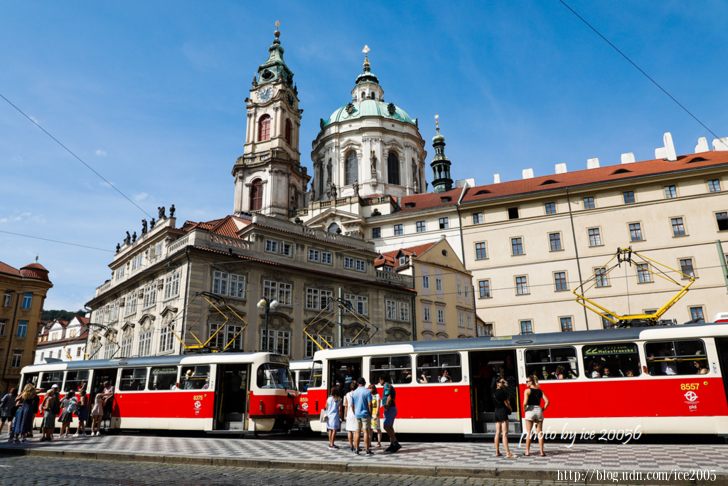 #16.小城廣場 Malostranské náměstí與聖尼古拉教堂 Kostel sv. Mikuláše一隅.........小城廣場環繞著聖尼古拉教堂,自從1257年開始的食品市集就成為小城區的中心。廣場西邊的圓柱是「黑死病紀念柱」,為紀念十八世紀初在布拉格肆虐的黑死病結束。