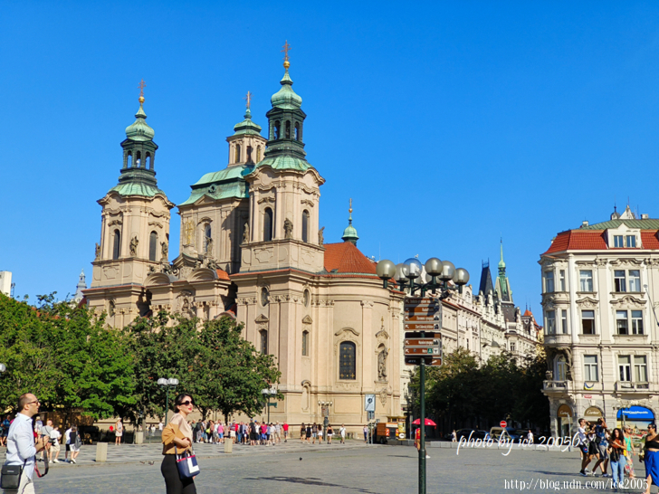 #3.廣場上的聖尼古拉教堂 Kostel sv. Mikuláše一隅.......布拉格有兩座聖尼古拉教堂,一座位在老城廣場旁,另一座是坐落在小城區。現今所見的這座聖尼古拉教堂也經過無數次的重建與整修,最後完成於十八世紀初。目前這座美麗的教堂是胡斯派的教堂。