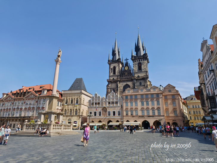 #1.舊城廣場 Staroměstské náměstí一隅.......布拉格舊城廣場上環繞著許多美麗的建築與景點,例如提恩教堂、聖尼古拉教堂、舊市政廳、天文鐘、胡斯雕像、聖母柱、以及廣場上的一條子午線等等。