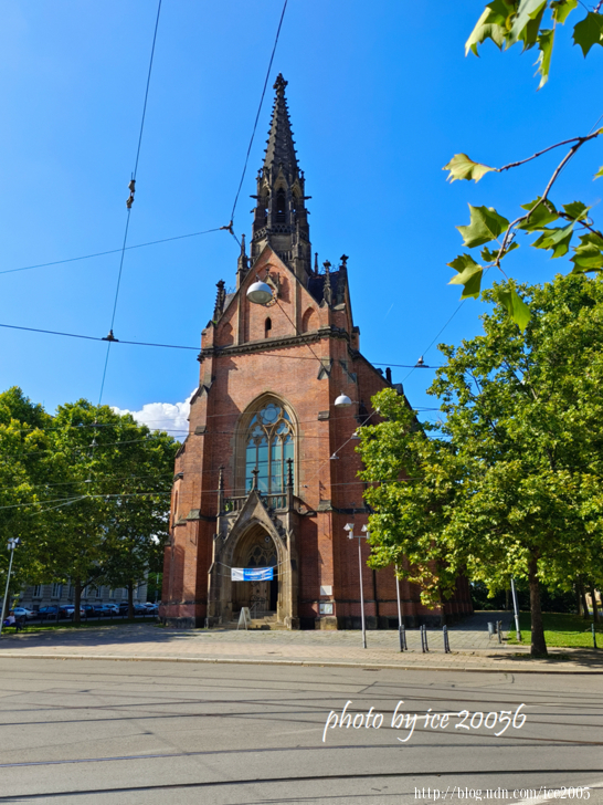 #15.誇美紐斯教堂(Českobratrský kostel)一隅.......有著哥德式建築風格的誇美紐斯教堂建於1863~1867年,由維也納建築師 Heinrich Ferstel設計,由於教堂是紅磚建造的,因此又被暱稱為紅教堂。