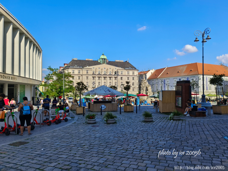 #12.綠色市集(Zelný Trh)一隅.......這個廣場設有早市,到處都可以看到賣新鮮蔬果的攤販,畫面中的場景也是當地人的日常.......