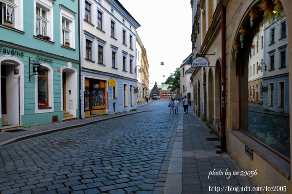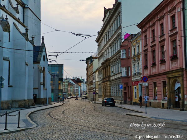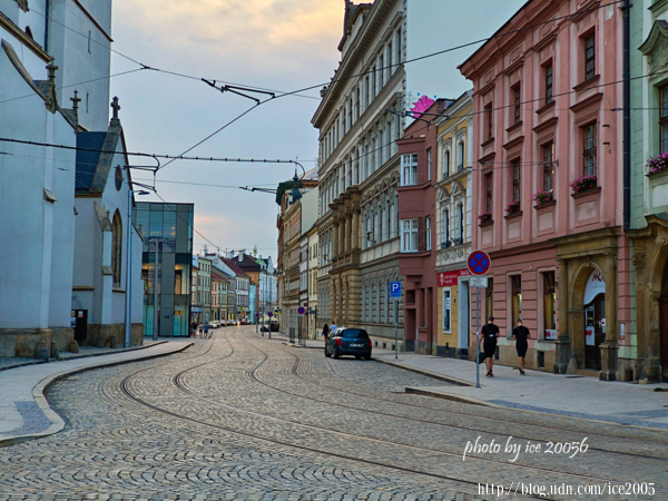 #28.街區一隅........靠近上廣場這處的街區很漂亮,左邊這座教堂是聖穆理思教堂(Kostel sv. Mořice),建於14世紀後期,是這個城市重要的地標之一。該教堂也是歷經數次重建,其中的南塔可追溯到1403年,是建築物最古老的部分,南塔也是俯瞰整個城市及周邊地區的最佳地點之一。