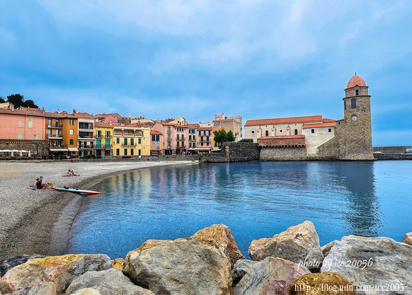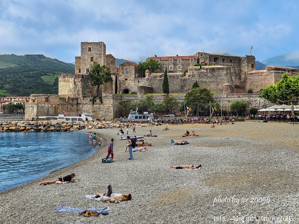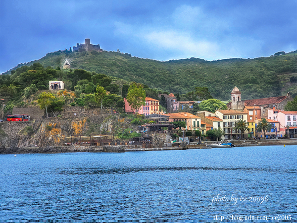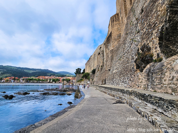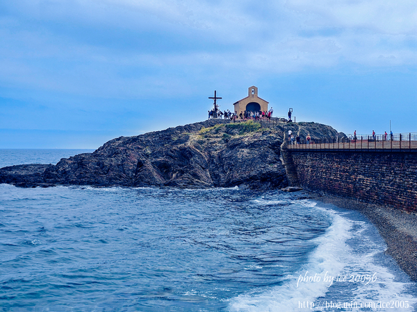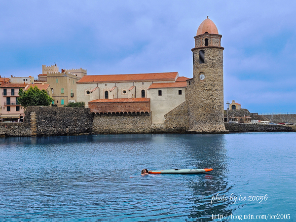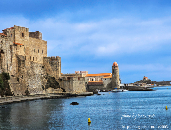 #27.從畫面中可以看到左側雄偉的科利尤爾皇家城堡以及位於前方的天使聖母教堂,右邊最遠處的小岬角上的小教堂是聖文森特禮拜堂(Chapelle Saint-Vincent)。
