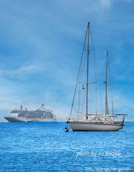 #26.除了港灣內的小船外,在遠處的海面還可以郵輪和帆船喔!