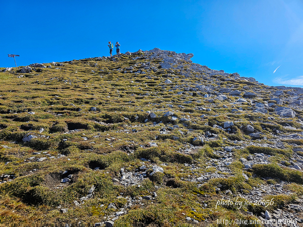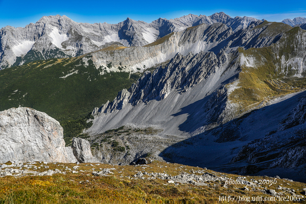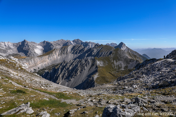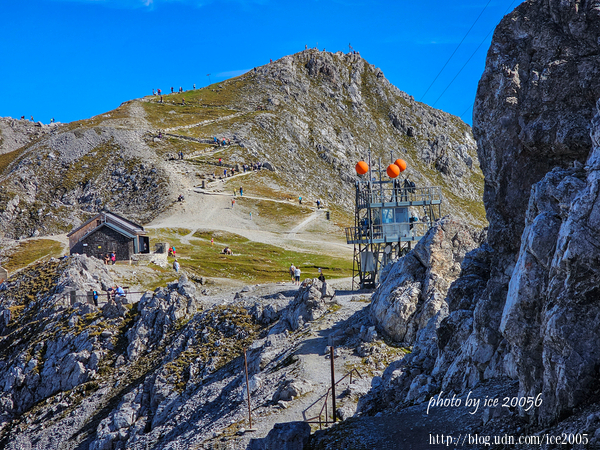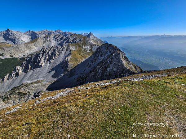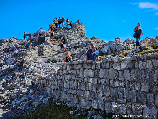 #13.哈菲萊卡峰(Hafelekarspitze)一隅......前方光禿禿的山峰就是哈菲萊卡峰,離開纜車站後,沿著之字形的步道往上走就可以抵達立有十字架的峰頂,亦即通稱的「因斯布魯克之巔 Top of Innsbruck」。和西格魯貝山一樣,這一帶也設有多條健行步道,在登頂之前,我們先沿著周圍的步道繞了一大圈,發覺冰雪退盡的北山別有一番風貌。
