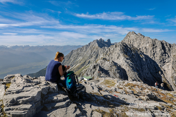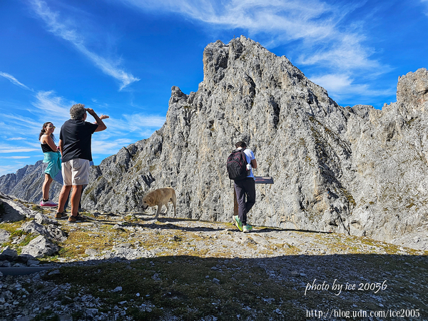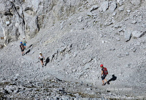 #26.行走在谷間的他們朝著鐵索攀岩路線(Nordkette Klettersteig)前進,後來在岩山上終於看到他們攀爬的身影。