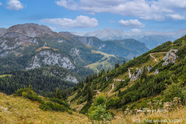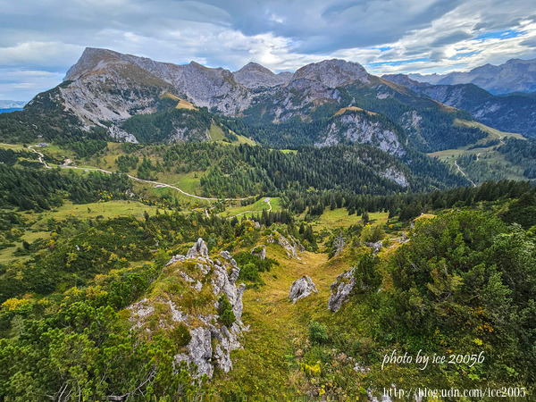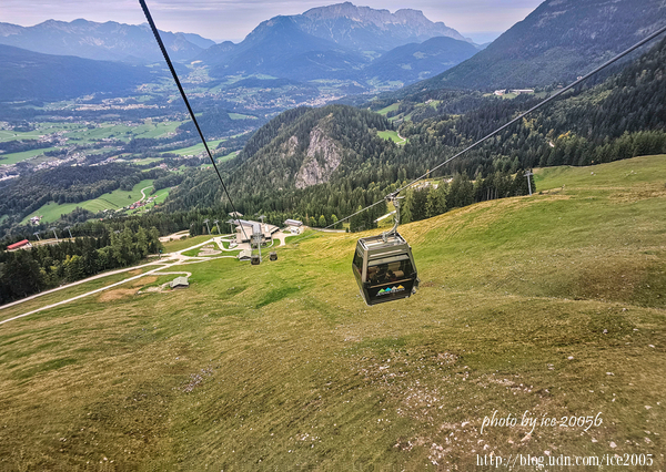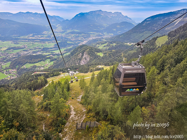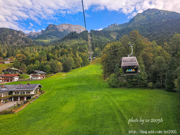 #33.搭纜車前往耶拿峰(Jenner)途中一隅......海拔高1874公尺的耶拿峰位於國王湖(Königssee)附近的一座山峰,是貝希特斯加登著名的景點之一。如果要登頂可以從山腳下的耶拿峰纜車(Jennerbahn)站搭乘纜車上山。耶拿峰纜車共分為兩段,第一段是位於海拔1200公尺的耶拿登山纜車中站(Jennerbahn Mittelstation),其終點站則位於海拔1800公尺處。如果要前往海拔1874公尺的耶拿峰觀景台就得繼續走20分鐘左右的山徑即可抵達。