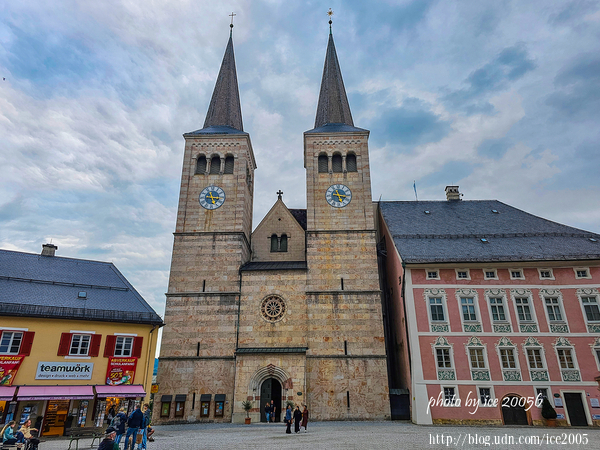 #3.聖彼得和施洗約翰教堂(Stiftskirche St. Peter und Johannes der Täufer)立面一隅......位於王宮廣場(Schlossplatz)上的教堂始建於1102年,在漫長的歲月中歷經幾次修建,並融合了不同時期的建築風格,並以其高達56公尺的雙塔而聞名。這座教堂也是貝希特斯加登皇宮建築群的一部分。