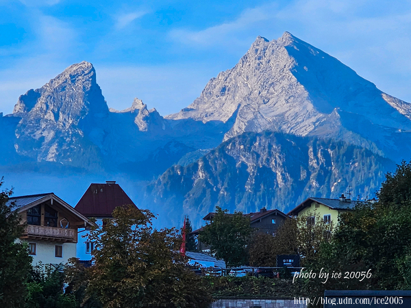 #9.朝陽下的瓦茲曼山(Watzmann)......天氣非常晴朗,加上雲霧飄渺,位在遠處的瓦茲曼山(Watzmann)顯得更為動人。