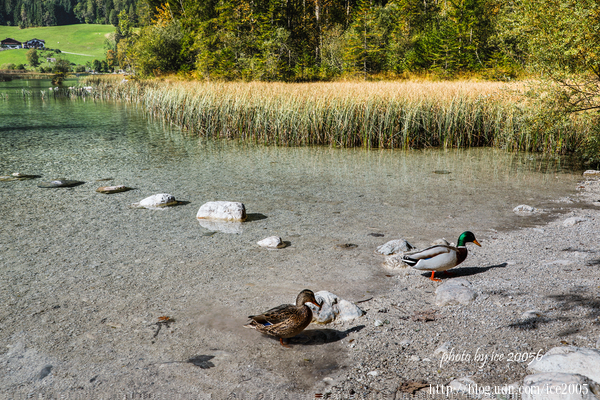 #23.辛特湖(Hintersee)一隅.....這側靠近岸邊的辛特湖湖水清澈見底,一旁還有大片轉黃的蘆葦草,瞧!還可以見到可愛的綠頭鴨呢!