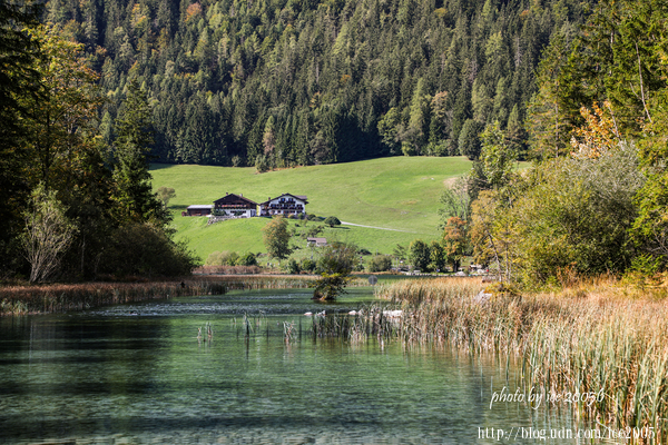 #24.辛特湖(Hintersee)一隅......湖對岸的山坡下是一片大草原,草原上還有有幾戶人家。