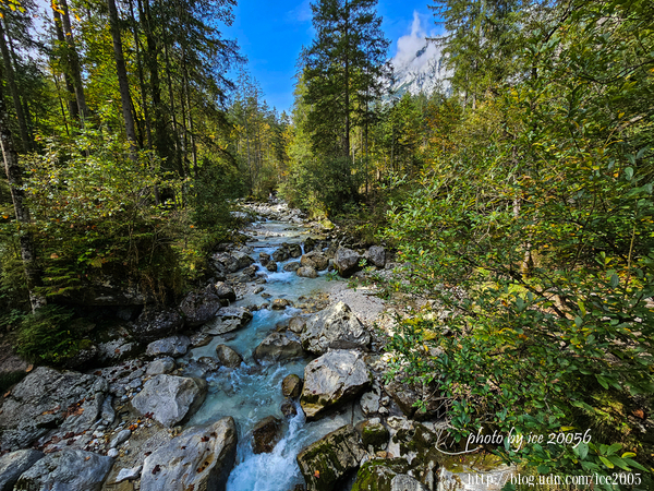 #6.藍紹河(Ramsauer Ache)的河水非常乾淨、清澈,很喜歡略帶藍色的河水。