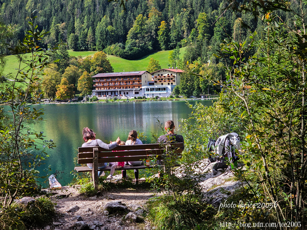 #27.辛特湖(Hintersee)一隅......湖畔除了設有環湖步道外,還提供許多座椅,一如眼前這個家庭坐在這裡休息兼賞湖景。