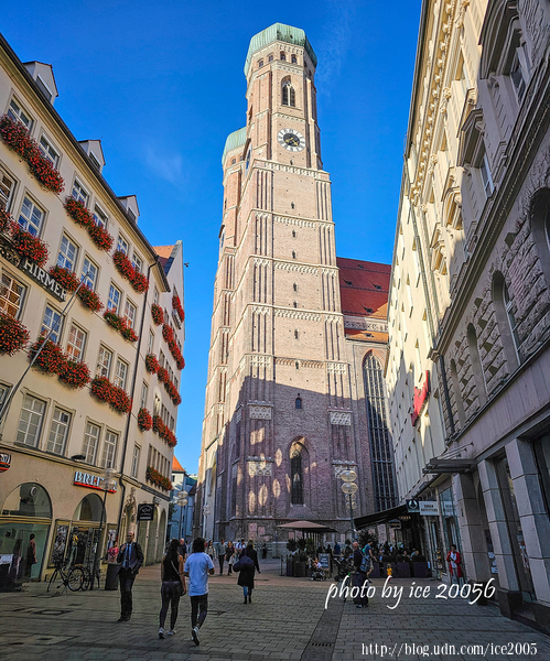#7.側看聖母教堂 (Frauenkirche)......聖母教堂是慕尼黑最大、最具代表性的教堂,包括聖羅馬皇帝路易四世、巴伐利亞末代國王路德維希三世都是安葬在此。聖母教堂建於1494年,其標誌性、高達98公尺的圓頂雙塔則落成於1525年。由於當地建築限高100公尺的規定,因此從慕尼黑老城中的各個角落,都能清楚地看到雙塔的身影。聖母教堂在二戰末期遭受嚴重的破壞,戰後展開修復,直到1994年才完全修復。