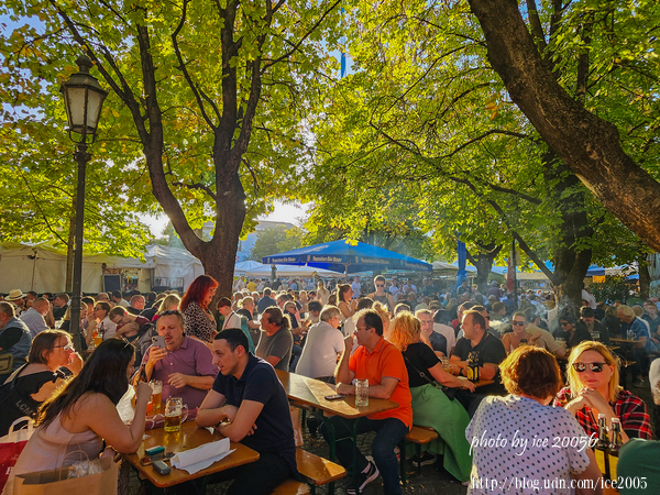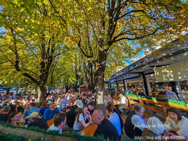 #23.穀物市場(Viktualienmarkt)一隅......這裡是一家啤酒攤的用餐處,這天適逢星期五,整個座位區座無虛席,熱鬧極了!