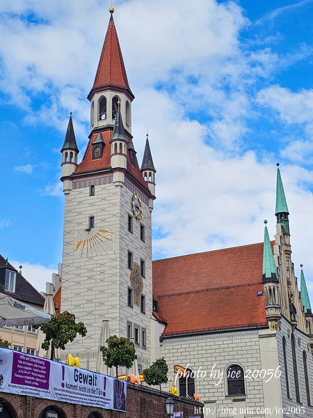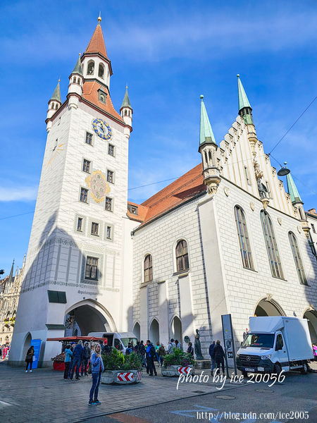 #17.慕尼黑舊市政廳(Altes Rathaus)......舊市政廳建於14世紀,把舊有的城門作為尖頂使用,並於15世紀重新設計為哥德式建築風格。左邊這棟哥德式建築為「舊市政廳」,現在作為市議會代表使用;右邊這棟塔樓則是「玩具博物館」,擁有4個樓面的展間。