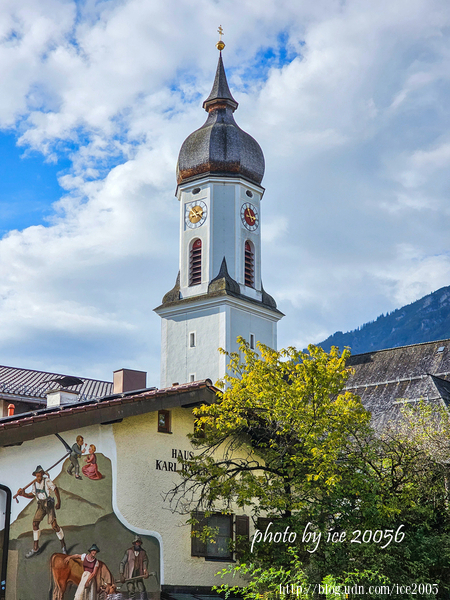 和德國南部其他城鎮一樣,加米施-帕滕基興 (Garmisch-Partenkirchen)最大的特色就是整座城鎮的房子外觀都繪有許多不同主題的美麗壁畫,這種被稱為Lüftlmalerei的濕壁畫在鄰近的菲森(Füssen)、米滕瓦爾德(Mittenwald)或是歐伯拉瑪高(Obeammergau)皆隨處可見,美麗的濕壁畫也為這座山區城鎮增添無限風情。從艾比湖回到市區後,我們除了享受一頓遲來的午餐外,僅隨意在城區四處走走,但沒有深入探索。另外,如果覺得這座雙子城的名稱太長太拗口,不妨簡稱加爾米施(Garmisch)即可,德國人懂得。且隨花鼠妹的腳步隨意逛逛唄!