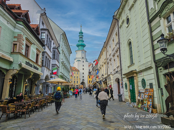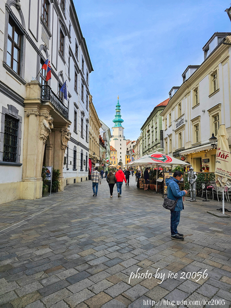 #25.舊城街區一隅......這條街道是舊城區最熱鬧的一條街區,前方那座高塔是麥克爾門(Michalská Brána)。